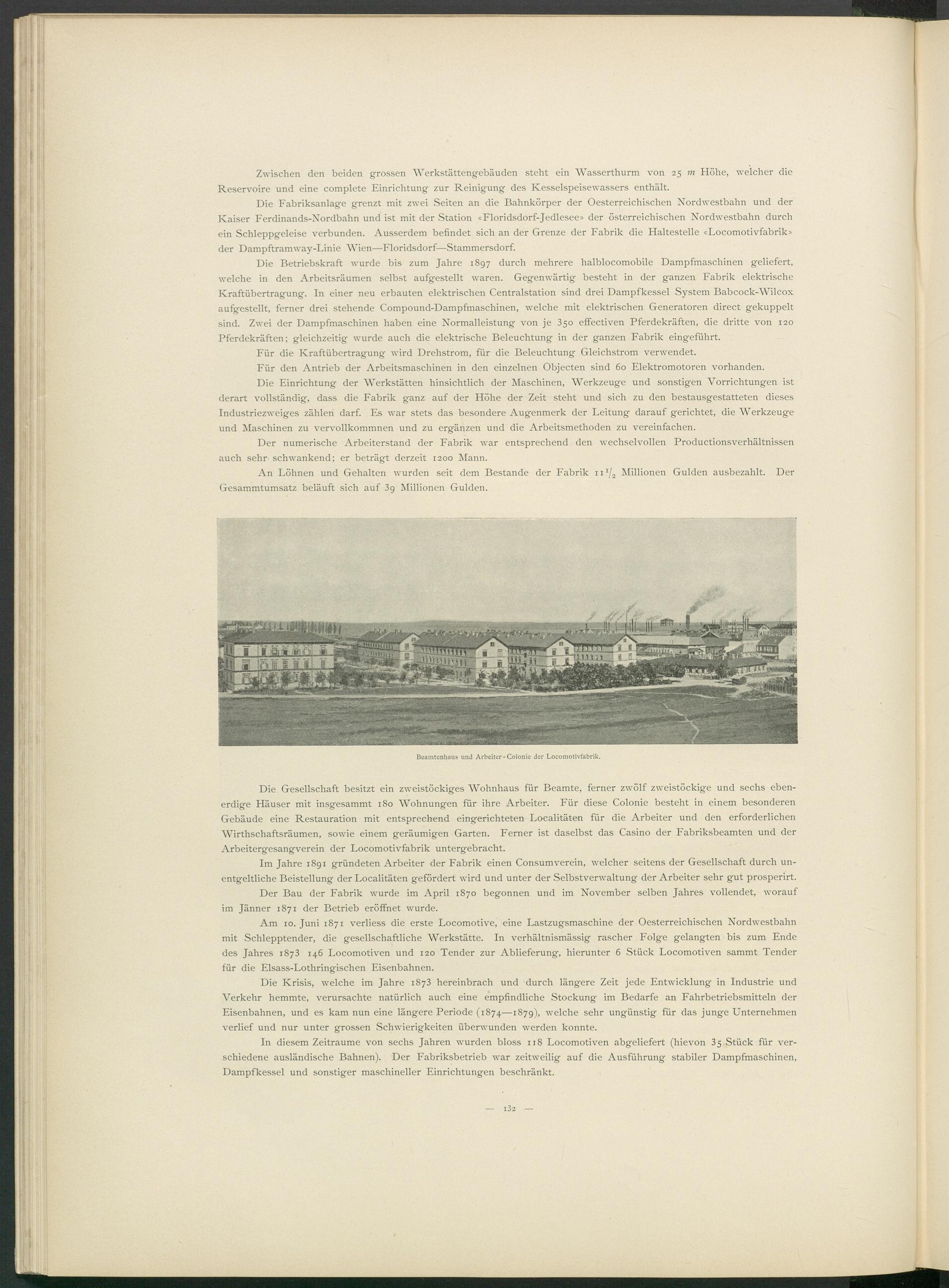 Der numerische Arbeiterstand der Fabrik war entsprechend den wechselvollen Productionsverhältnissen auch sehr schwankend; er beträgt derzeit 1200 Mann.