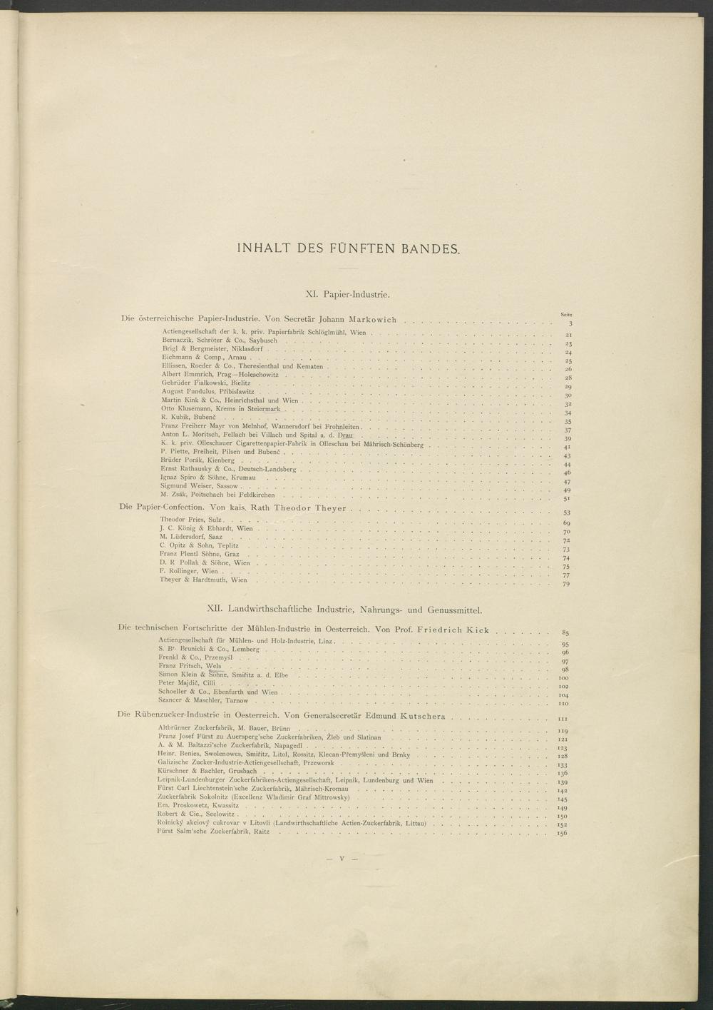INHALT DES FÜNFTEN BANDES.