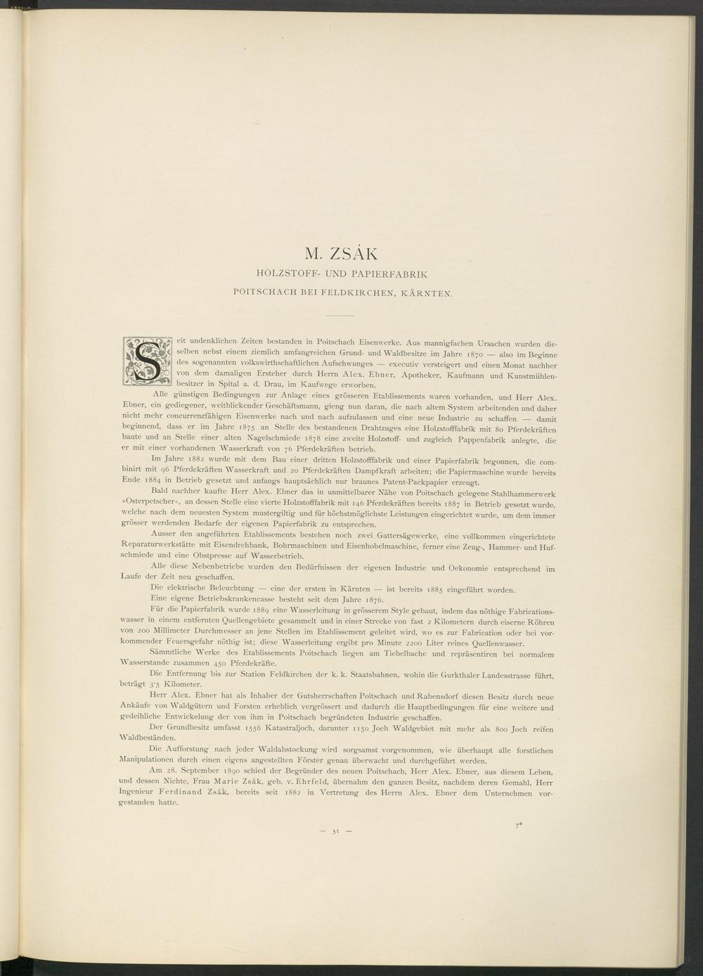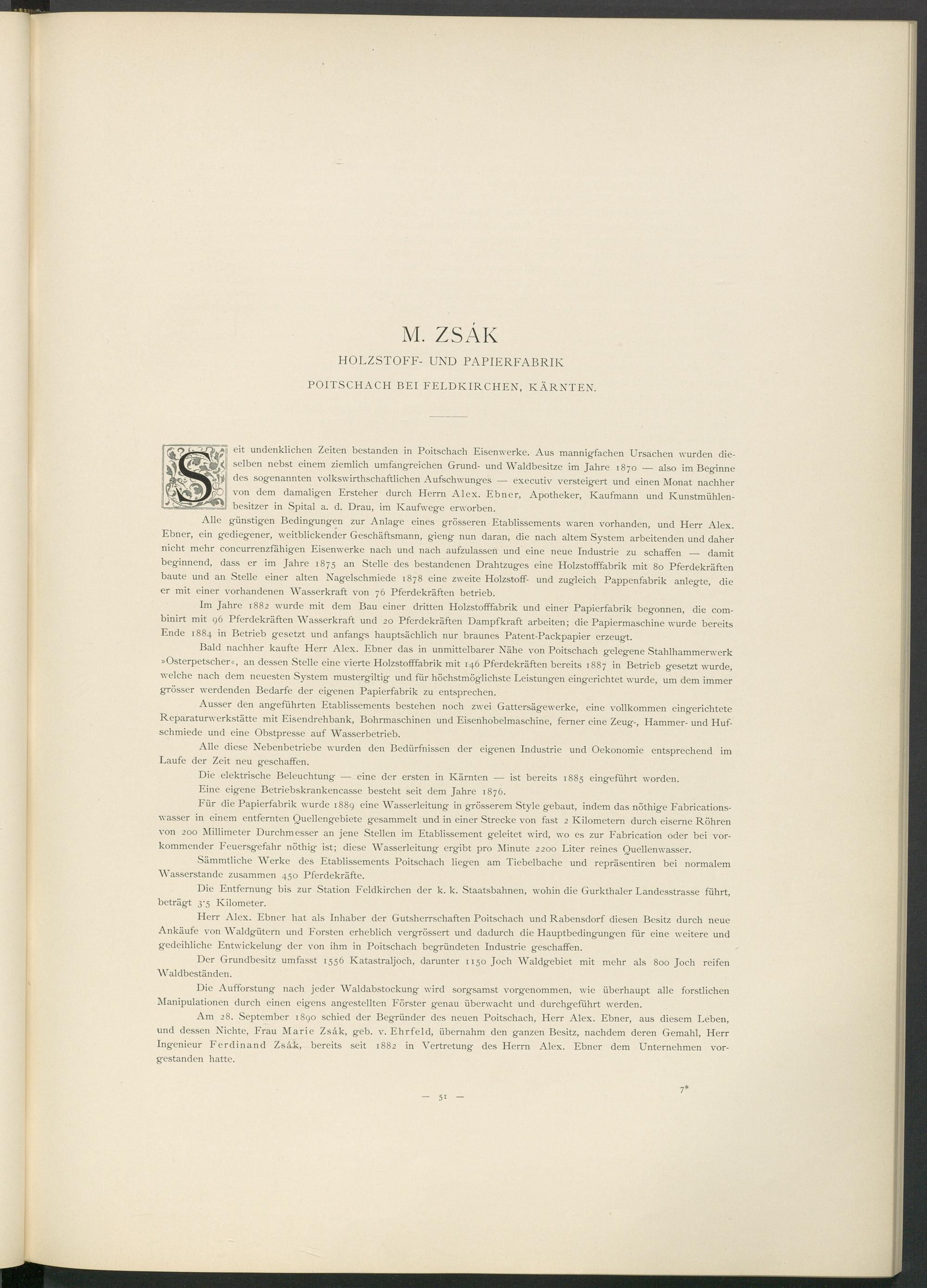 Herr Alex. Ebner hat als Inhaber der Gutsherrschaften Poitschach und Rabensdorf diesen Besitz durch neue Ankäufe von Waldgütern und Forsten erheblich vergrössert und dadurch die Hauptbedingungen für eine weitere und gedeihliche Entwickelung der von ihm in Poitschach begründeten Industrie geschaffen.