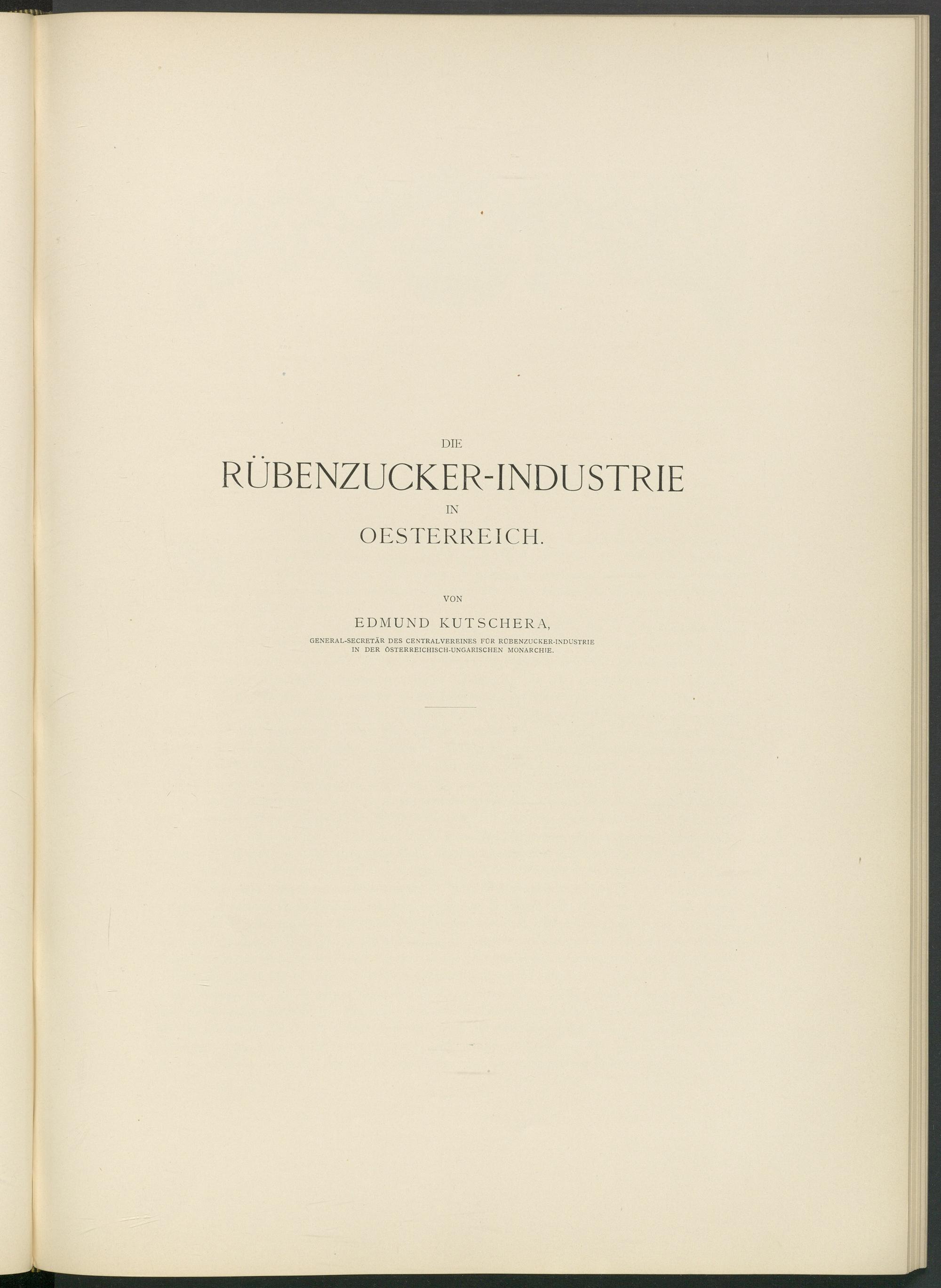 GENERAL-SECRETÄR DES CENTRALVEREINES FÜR ROBENZUCKER-INDUSTRIE IN DER ÖSTERREICHISCH-UNGARISCHEN MONARCHIE.
