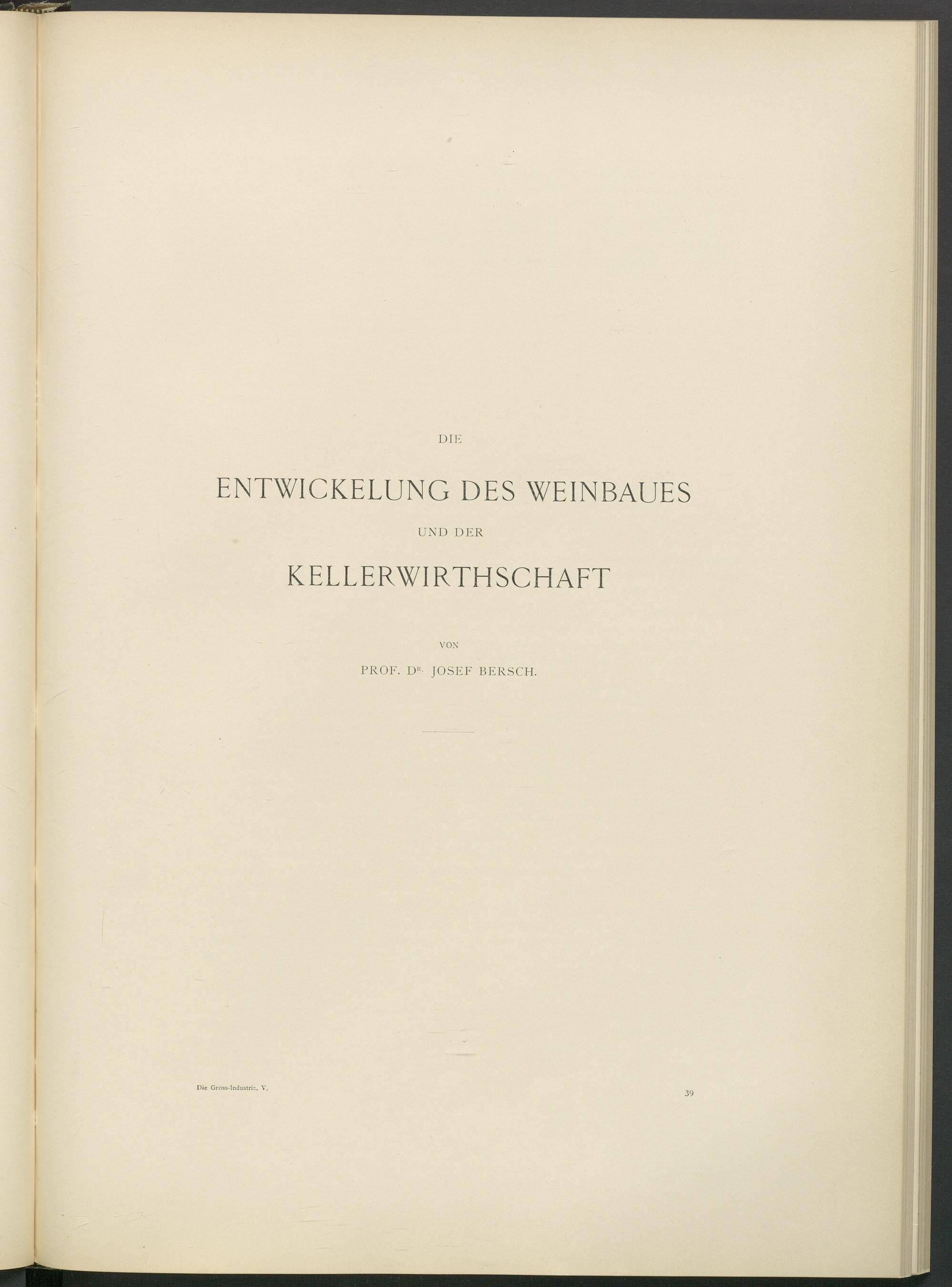 DIE ENTWICKELUNG DES WEINBAUES UND DER KELLERWIRTHSCHAFT VON PROF. D R - JOSEF BERSCH. Die Gross-Industrie. V. 39