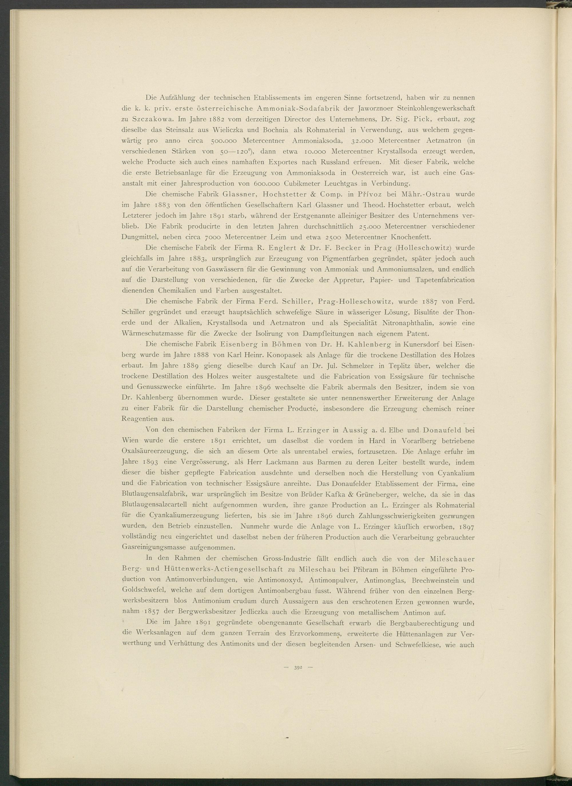 Die chemische Fabrik der Firma R. Englert & Dr. F. Becker in Prag (Holleschowitz) wurde gleichfalls im Jahre 1883, ursprünglich zur Erzeugung von Pigmentfarben gegründet, später jedoch auch auf die Verarbeitung von Gaswässern für die Gewinnung von Ammoniak und Ammoniumsalzen, und endlich auf die Darstellung von verschiedenen, für die Zwecke der Appretur, Papier- und Tapetenfabrication dienenden Chemikalien und Farben ausgestaltet.