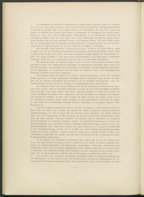 In den Rahmen der chemischen Gross-Industrie fällt endlich auch die von der MBeschauer Berg- und Hüttenwerks-Actiengesellschaft zu Mileschau bei Pribram in Böhmen eingeführte Production von Antimonverbindungen, wie Antimonoxyd, Antimonpulver, Antimonglas, Brechweinstein und Goldschwefel, welche auf dem dortigen Antimonbergbau fusst. Während früher von den einzelnen Bergwerksbesitzern blos Antimonium crudum durch Aussaigern aus den erschrotenen Erzen gewonnen wurde, nahm 1857 der Bergwerksbesitzer Jedliczka auch die Erzeugung von metallischem Antimon auf.