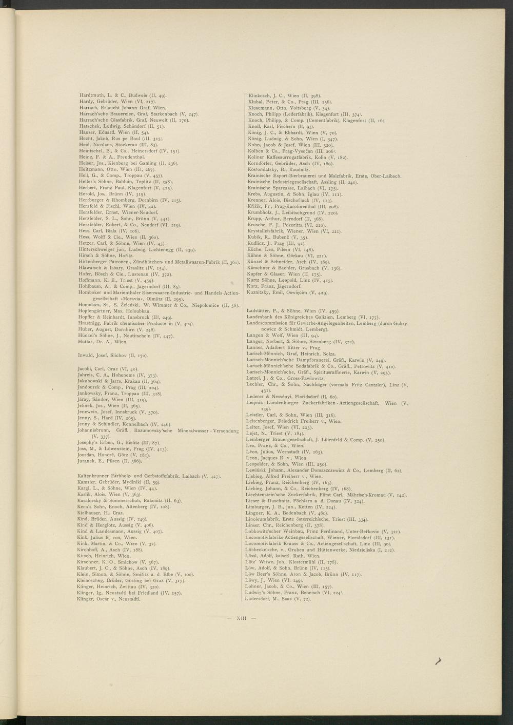 Lewinski, Johann, Alexander Domaszczewicz & Co., Lemberg (II, 62). Liebieg, Alfred Freiherr v., Wien.