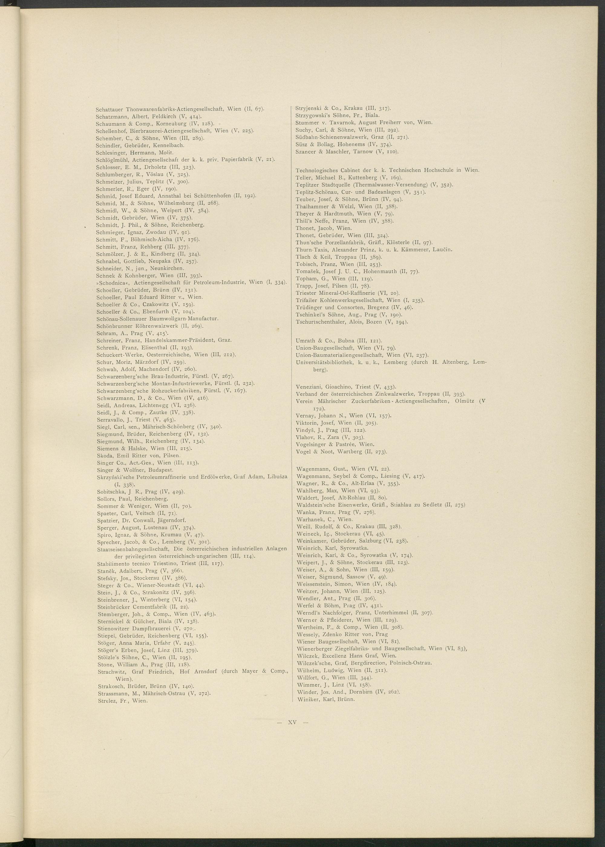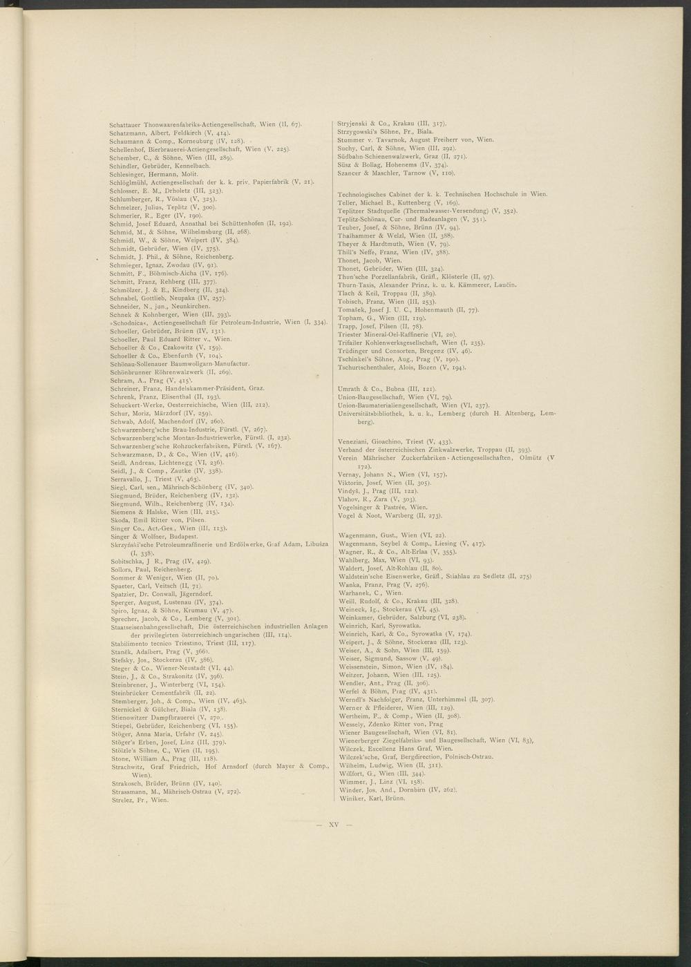 »Schodnica«, Actiengesellschaft für Petroleum-Industrie, Wien (I, 334). Schoeller, Gebrüder, Brünn (IV, 131).
