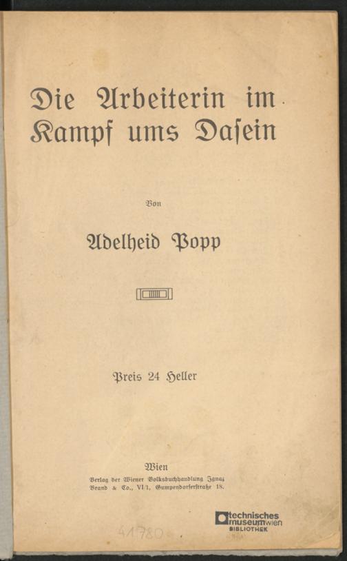 Die Arbeiterin im Kampf ums Dasein / von Adelheid Popp