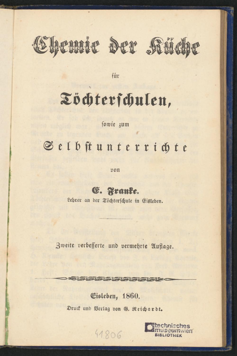 BIBL-41806: Chemie der Küche für Töchterschulen, sowie zum Selbstunterrichte