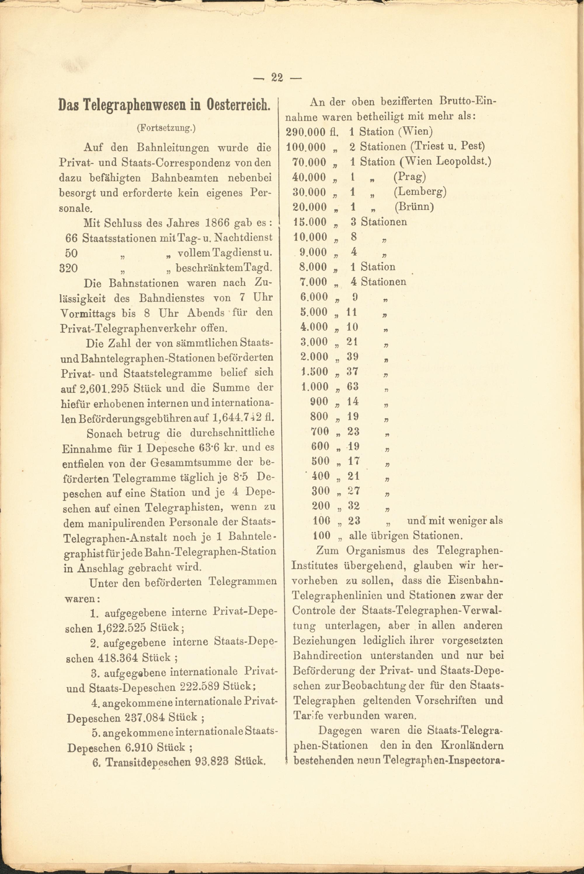 Mit Schluss des Jahres 1866 gab es : 66 Staatsstationen mit Tag-u. Nachtdienst 50 „ „ vollem Tagdienst u.