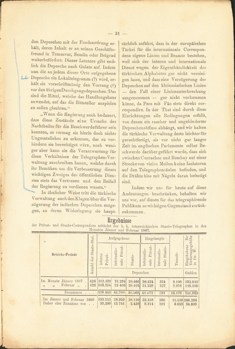 „Wenn die Legierung auch bedauert, dass diese Zustände eine Ursache des Nachtheiles für die Beschwerdeführer sein konnten, so vermag sie hierin doch nichts 1 Ungesetzliches zu erkennen, das zu verhindern sie berechtiget wäre, noch weniger aber kann sie die Verantwortung für diese Verhältnisse der Telegraphen-Verwaltung zuschreiben lassen, welche durch ihr Bemühen um die Verbesserung dieses wichtigen Zweiges des öffentlichen Dienstes stets das Vertrauen und den Beifall der Regierung zu verdienen wusste/ 4