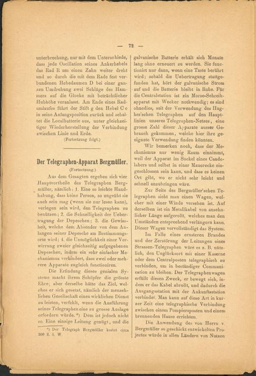*) Der Telegraph Bergmüller kostet circa 300 fl. ö. W.