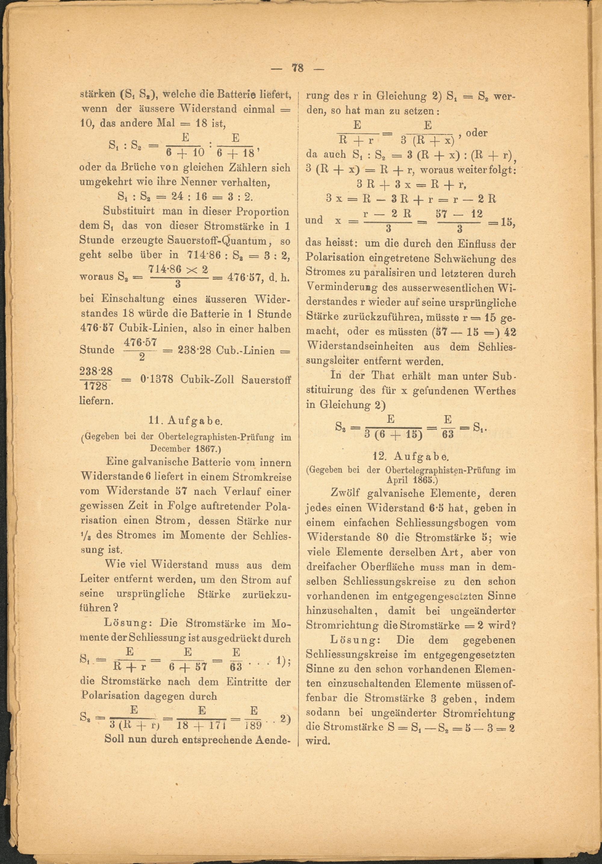 (Gegeben bei der Obertelegraphisten-Prüfung im December 1867.)