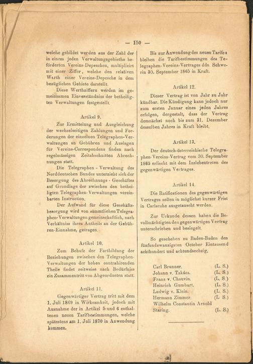 Der deutsch-österreichische Telegraphen-Vereins-Vertrag vom 30. September 1863 erlischt mit dem Inslebentreten des gegenwärtigen Vertrages.