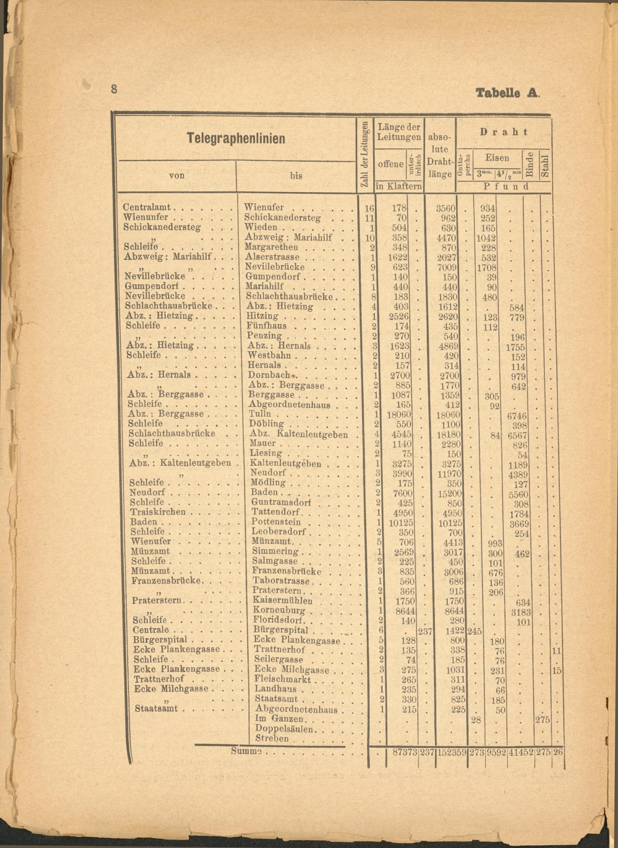 Guntramsdorf . Tattendorf. . . Pottenstein . . Leobersdorf. . Münzamt. . . . Simmering . . . Salmgasse . . . Franzensbrücke Taborstrasse. . Praterstern. . . Kaisermühlen . Korneuburg . . Floridsdorf. . . Bürgerspital . . . Ecke Plankengasse Trattnerhof . . Seilergasse . . Ecke Milchgasse Fleischmarkt . . Landhaus . . . Staatsamt .... Abgeordnetenhaus Im Ganzen. . . Doppelsäulen. . Streben ....