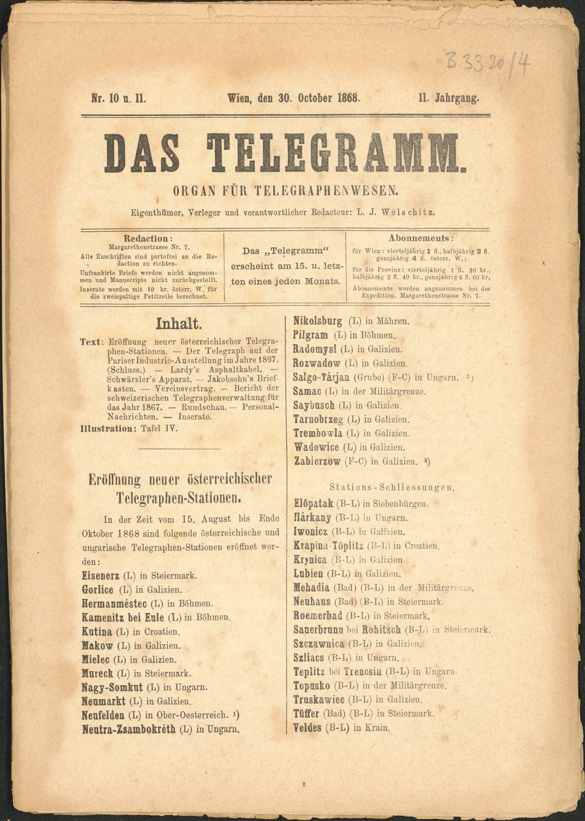 Das Telegramm : Organ für Telegraphenwesen