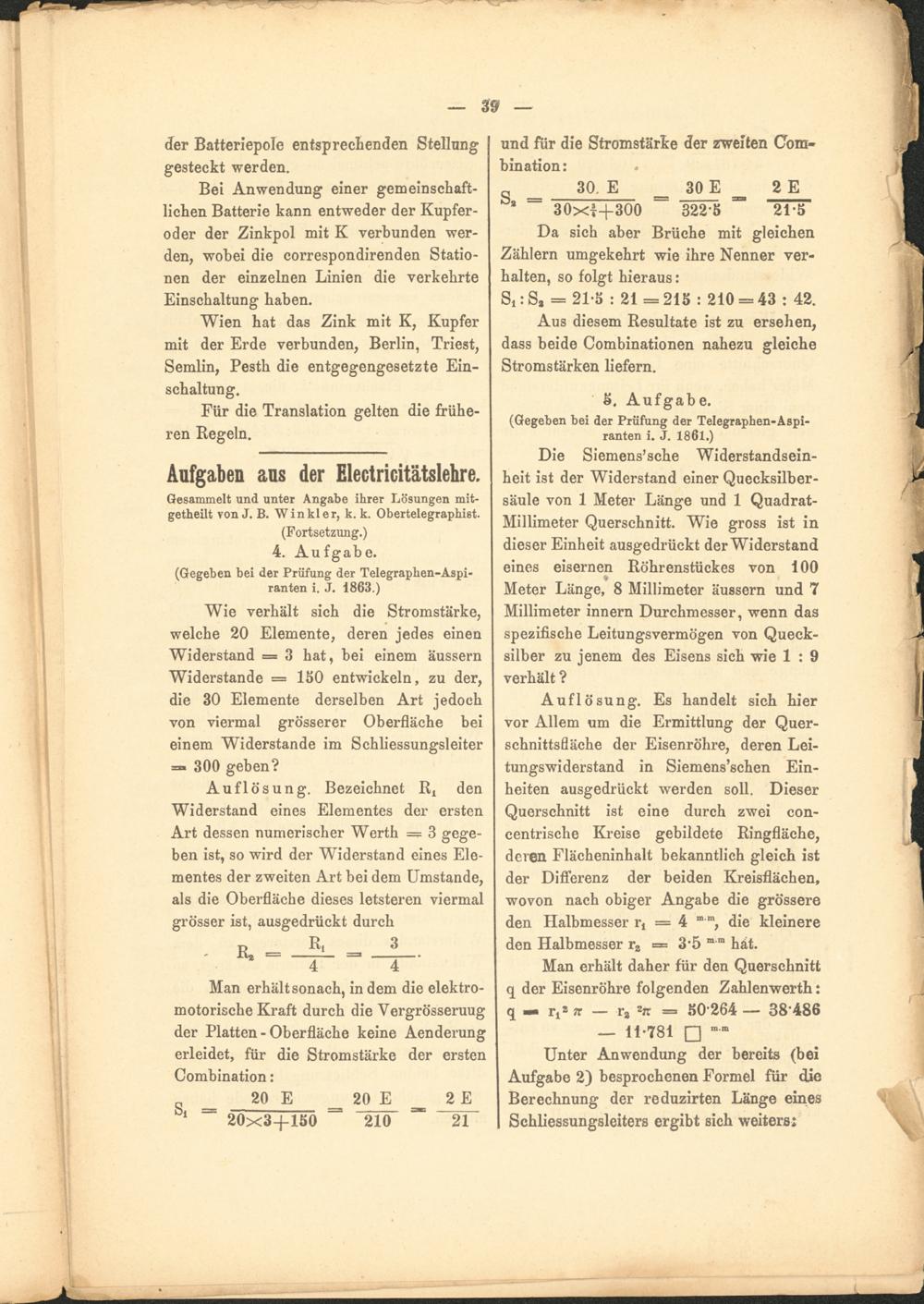 (Gegeben bei der Prüfung der Telegraphen-Aspi- ranten i. J. 1863.)