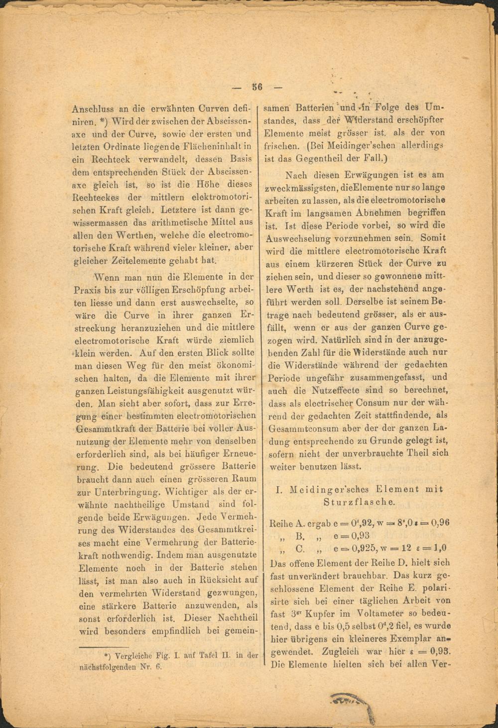samen Batterien und »in Folge des Umstandes, dass der Widerstand erschöpfter Elemente meist grösser ist, als der von frischen. (Bei Meidinger’sehen allerdings ist das Gegentheil der Fall.)